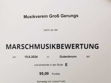 Der Musikverein Groß Gerungs erreichte am 15. Juni 2024 die höchste Tageswertung bei der Marschmusikbewertung in Gutenbrunn.