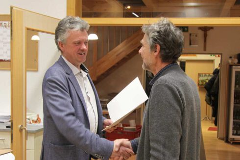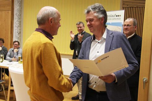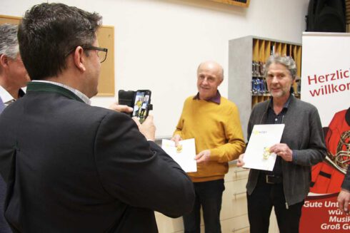 Zur Ehrenmedaille für 50-jährige aktive Mitgliedschaft: Ferdinand Neunteufl, Werner Hahn