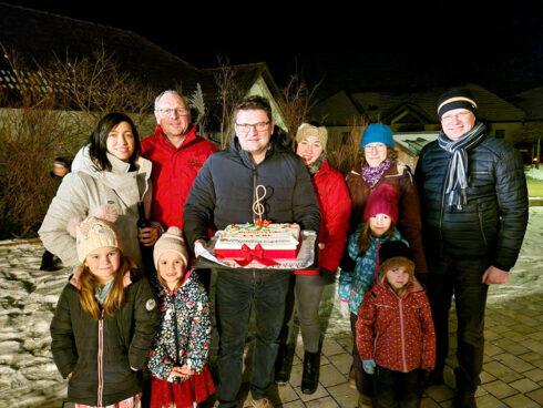 Mit einem Ständchen zu seinem 50. Geburtstag wurde Alexander Reisinger von seinem Musikverein „überrascht“. Bei -4 Grad und den ersten „Einfriererscheinungen“ bei den Instrumenten, zeigte sich, wie viele Personen so eine Wohnküche aufnehmen kann. Auf diesem Wege nochmals alles Gute, Gesundheit und weiterhin viele musikalische Höhepunkte.