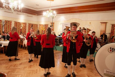 Beim „Warm up“ mit der „Germser Klarinettenmusi“ füllte sich der Saal und die Gäste begannen die Atmosphäre und Stimmung aufzufangen. Eine kleine Eröffnungsshowfigur wurde unter der Leitung von Michael Stern mit jungen und jung gebliebenen MusikerInnen einstudiert. So marschierte eine Abordnung des Musikvereins zu den Klängen von „Schloss Leuchtenburg“ ein, und begeisterte das Publikum mit ihrer Performance, während die Melodie „Hereinspaziert“ von den MusikerInnen gespielt wurde. Ein gelungener Beginn des Abends, der nach den Grußworten der Ballorganisatorinnen und des Obmannes Paul Traxler von Bgmst. Christian Laister offiziell eröffnet wurde.