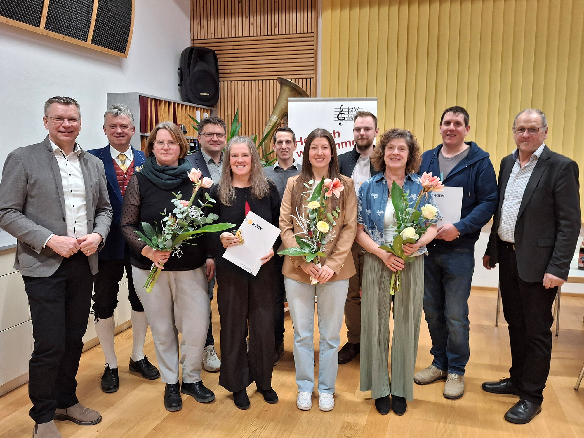 Fester Programmpunkt der Veranstaltung: die Ehrungen verdienter aktiver Mitglieder, welche Bezirksobmann Martin Hausleitner an folgende MusikerInnen überreichte: